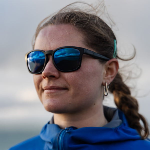 Our Towan frames are paired with polarised Polycarbonate+ lenses, designed to cut glare from sea, snow and other reflective surfaces for clearer, comfortable vision for all adventures. Built for lightweight performance, the lenses offer high impact resistance, with an outer anti-scratch coating and an inner anti-reflection coating to cut internal reflections on the back of the lens, reducing visual distractions and sharpening clarity. Our blue mirror option further enhances contrast and performance in bright conditions. All of our lenses offer full UV400+ protection.